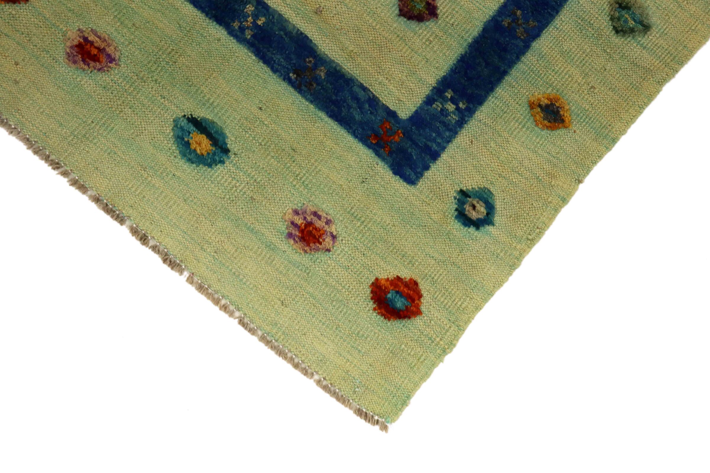 This kilim represents a timelessly fascinating work of art, created by skilful craftsmanship in Afghanistan. Its contemporary design draws admiring glances, with each thread of carefully spun sheep's wool skilfully woven by skilled hands. This unique piece epitomises the traditional craftsmanship of the Orient in an impressive way.
