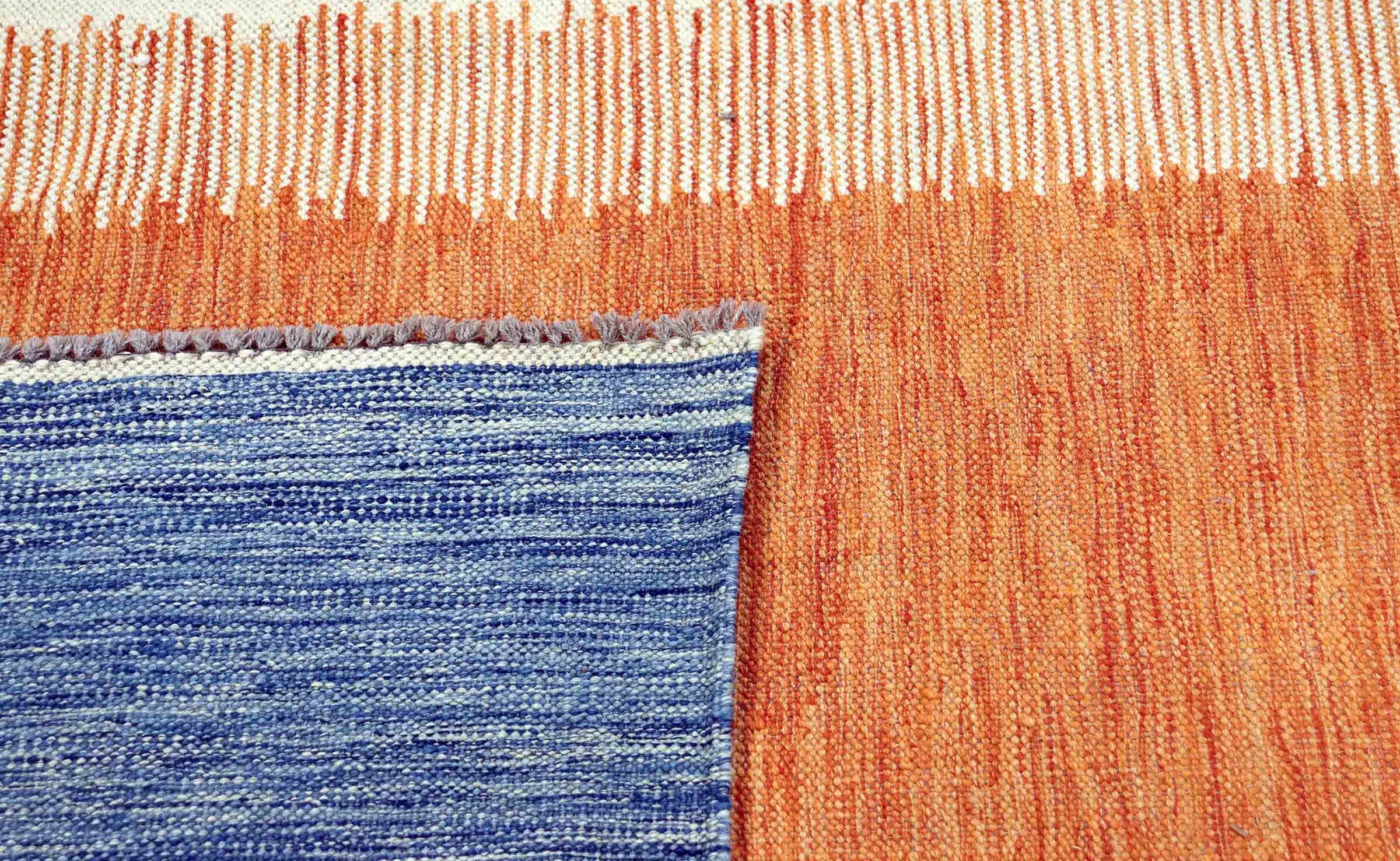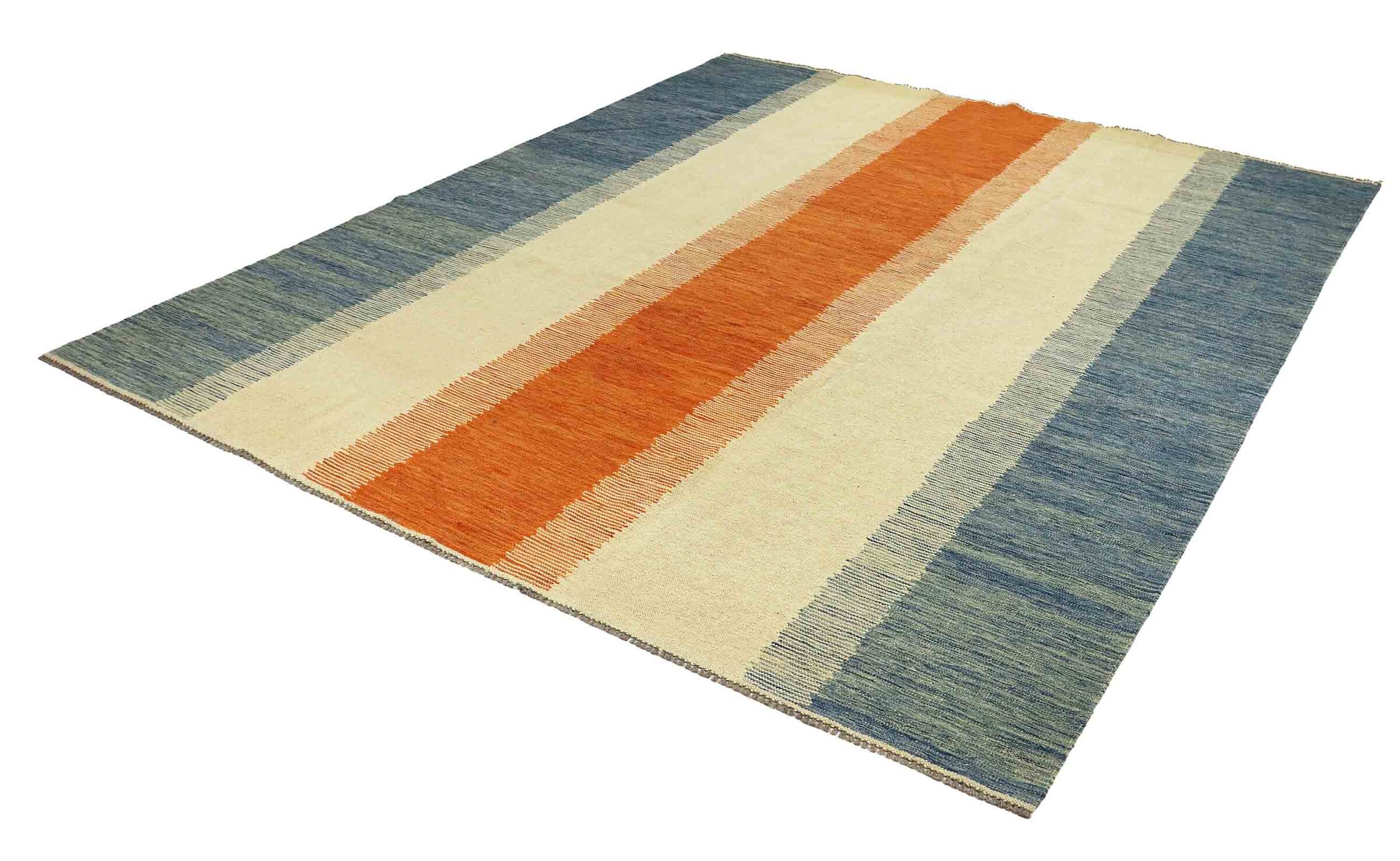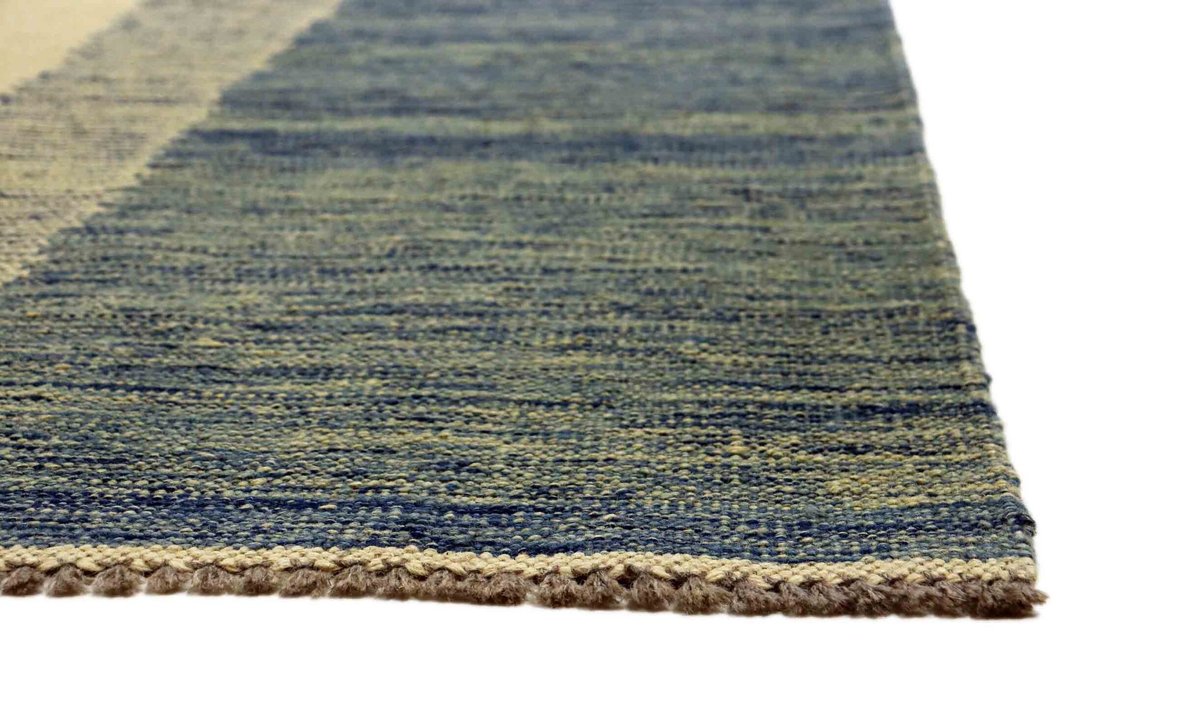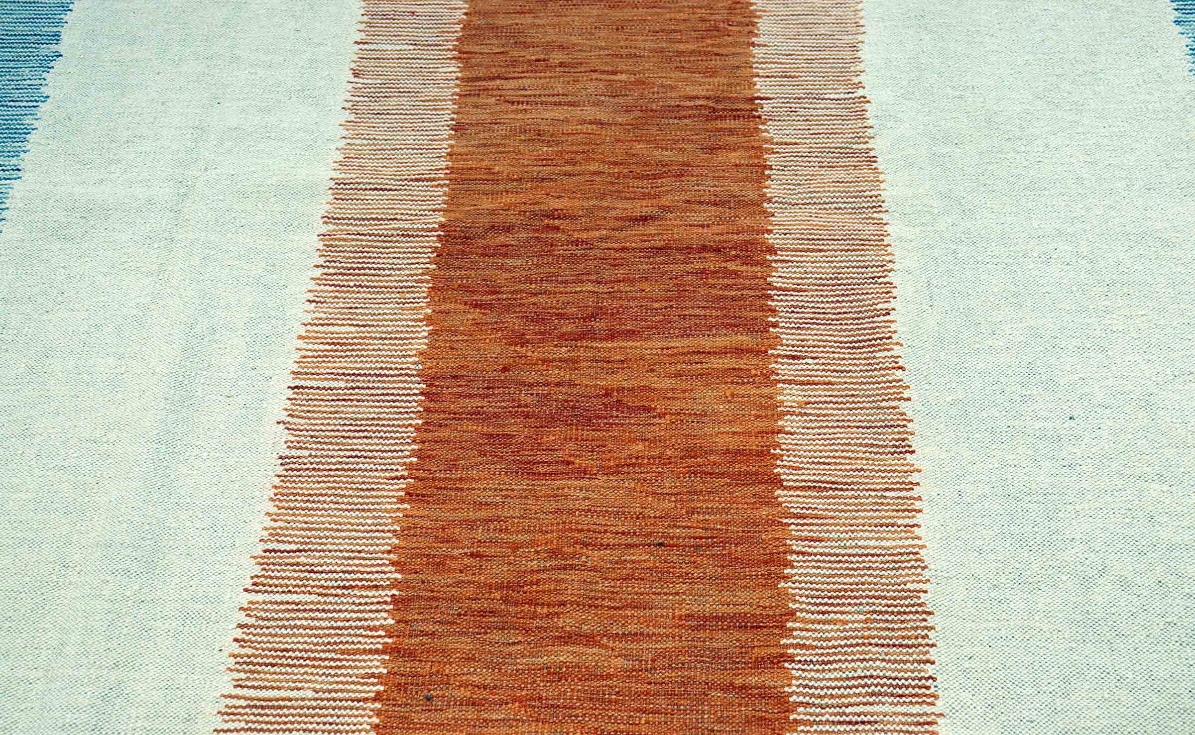 This carpet is made as a flatweave by hand on looms instead of being machine-made. Unlike traditional high pile carpets, flat weave carpets do not have thick pile fibres and are instead woven flat or very flat. This type of rug is often prized for its versatility and sleek, modern appearance. Flat weave carpets are a popular choice for those looking for a durable and stylish floor covering that suits a variety of interior styles.